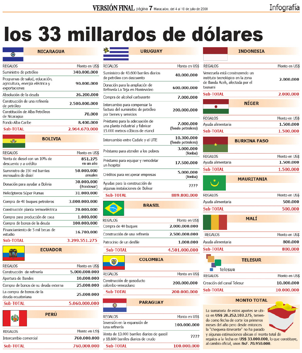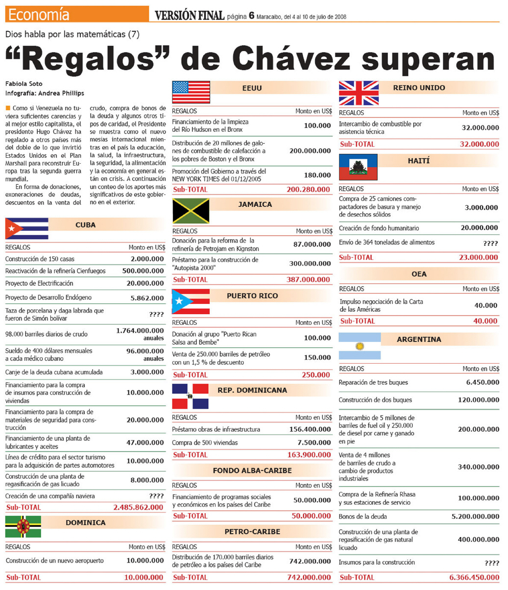 (1), Se entrega cantidades de insumos y dinero incontrolado a Cuba, se habla de 1200 millones de dólares anuales.